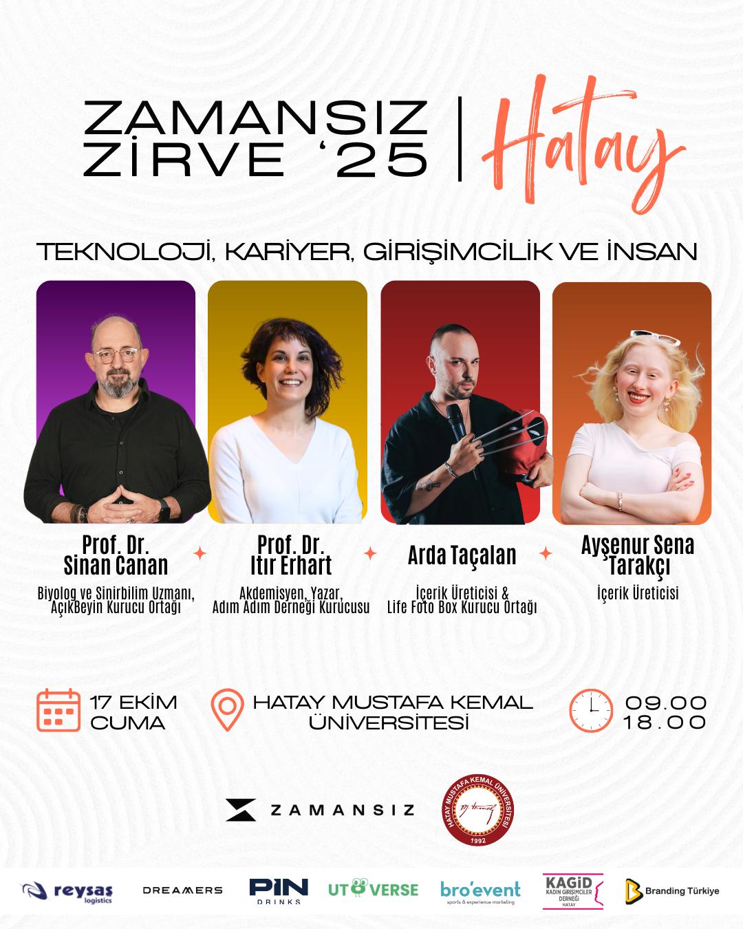 Zamansız Ekibi, Hatay Mustafa Kemal Üniversitesi'nde "Zamansız Zirve '25: Hatay" Etkinliğinde Öğrencilerimizle Buluşuyor.