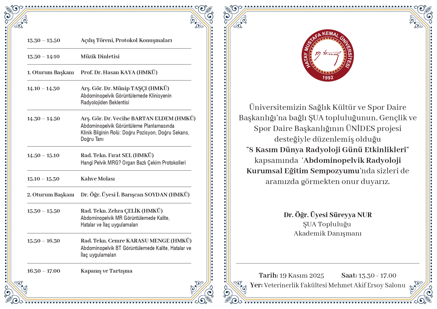 ABDOMİNOPELVİK RADYOLOJİ " Kurumsal Eğitim Sempozyumu" : KURUMSAL İLETİŞİM KOORDİNATÖRLÜĞÜ tarafından yayınlanmıştır. : 19 Kasım 2025 - 19 Kasım 2025