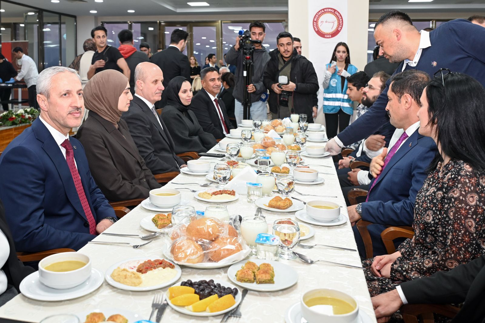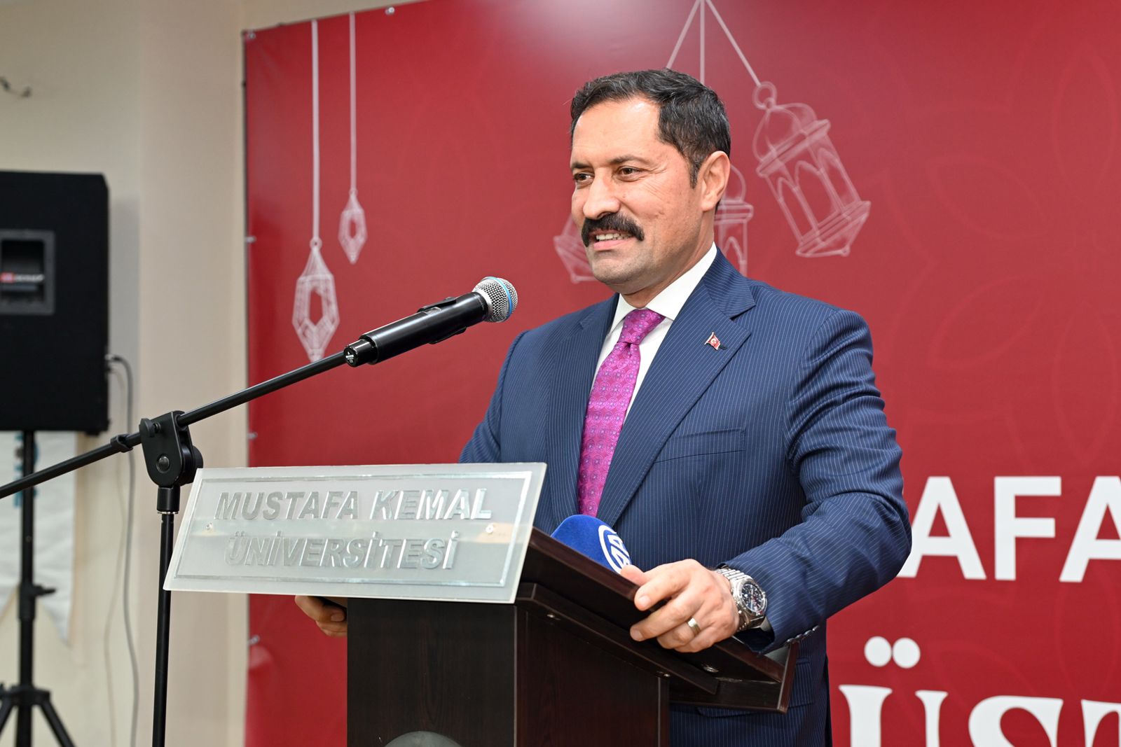 Türkiye Gençlik Vakfı’nın HMKÜ Merkezi Yemekhanede organize ettiği ve yoğun bir katılımın olduğu iftar programında konuşan Yüksek Öğretim Kurulu Başkanımız Prof. Dr. Erol Özvar, 6 Şubat Kahramanmaraş merkezli depremlerinden en fazla etkilenen Hatay’ı ve mücavir illeri kısa süre sonra Bakanlarla birlikte ziyaret ettiğini hatırlattı. Rektörümüz Prof. Dr. Veysel Eren’e depremde kaybettiği yakınları için baş sağlığı dileyerek, “Sağ olsun o durumda bile görevinin hakkını yerine getirdi.” dedi.