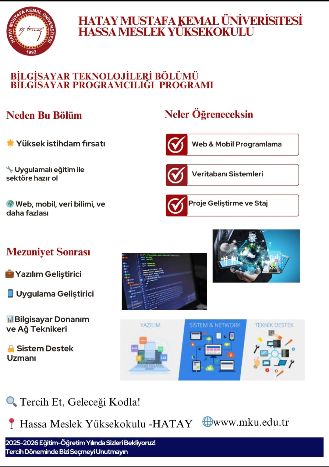 Hatay Mustafa Kemal Üniversitesi Hassa Meslek Yüksekokulu bünyesinde 2025–2026 eğitim-öğretim yılında öğrenci alımına başlayacak olan Çevresel Ölçüm ve İzleme Sistemleri Teknikerliği programı, çevre bilimi ve teknolojiyi bir araya getirerek sürdürülebilir bir gelecek için donanımlı teknikerler yetiştirmeyi amaçlamaktadır.