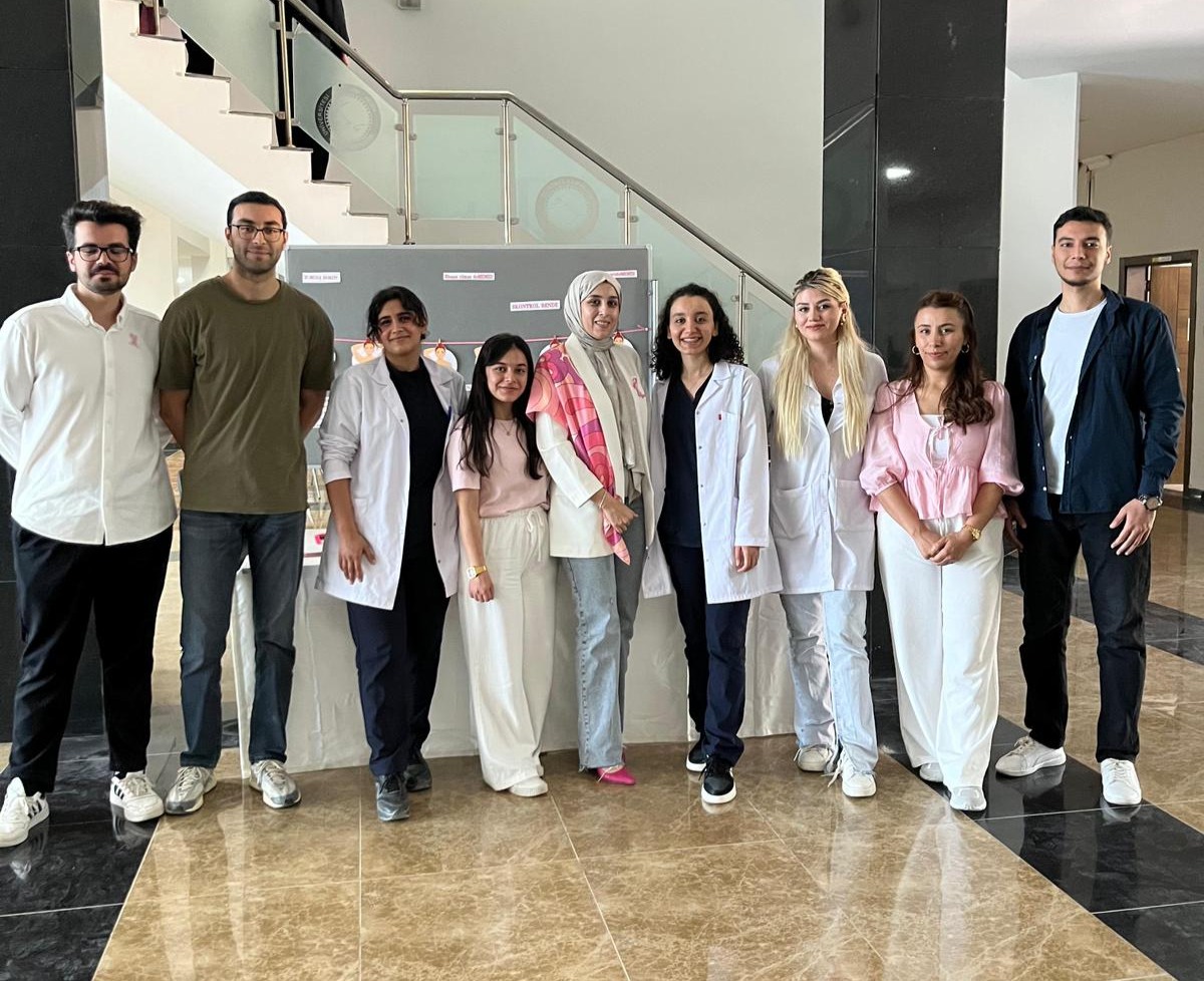 KAGÜN (Kadın Güçlendirme ve Üniversite Dayanışma Topluluğu) kapsamında, 1–31 Ekim Meme Kanseri Farkındalık Ayı etkinlikleri çerçevesinde, üniversiteli kadınlara yönelik farkındalık etkinliği düzenlenmiştir. Sağlık Bilimleri Fakültesi fuaye alanında gerçekleştirilen etkinlikte, kendi kendine meme muayenesi (KKMM) ve meme kanseri hakkında bilgilendirme eğitimleri verilmiş; sağlıklı ve hastalıklı meme maketleri, görseller ve bilgilendirici broşürler kullanılarak farkındalık oluşturulması amaçlanmıştır. Etkinlik süresince yaklaşık 100 kişi ile birebir iletişim kurulmuş ve 80 katılımcıya ulaşılmıştır.